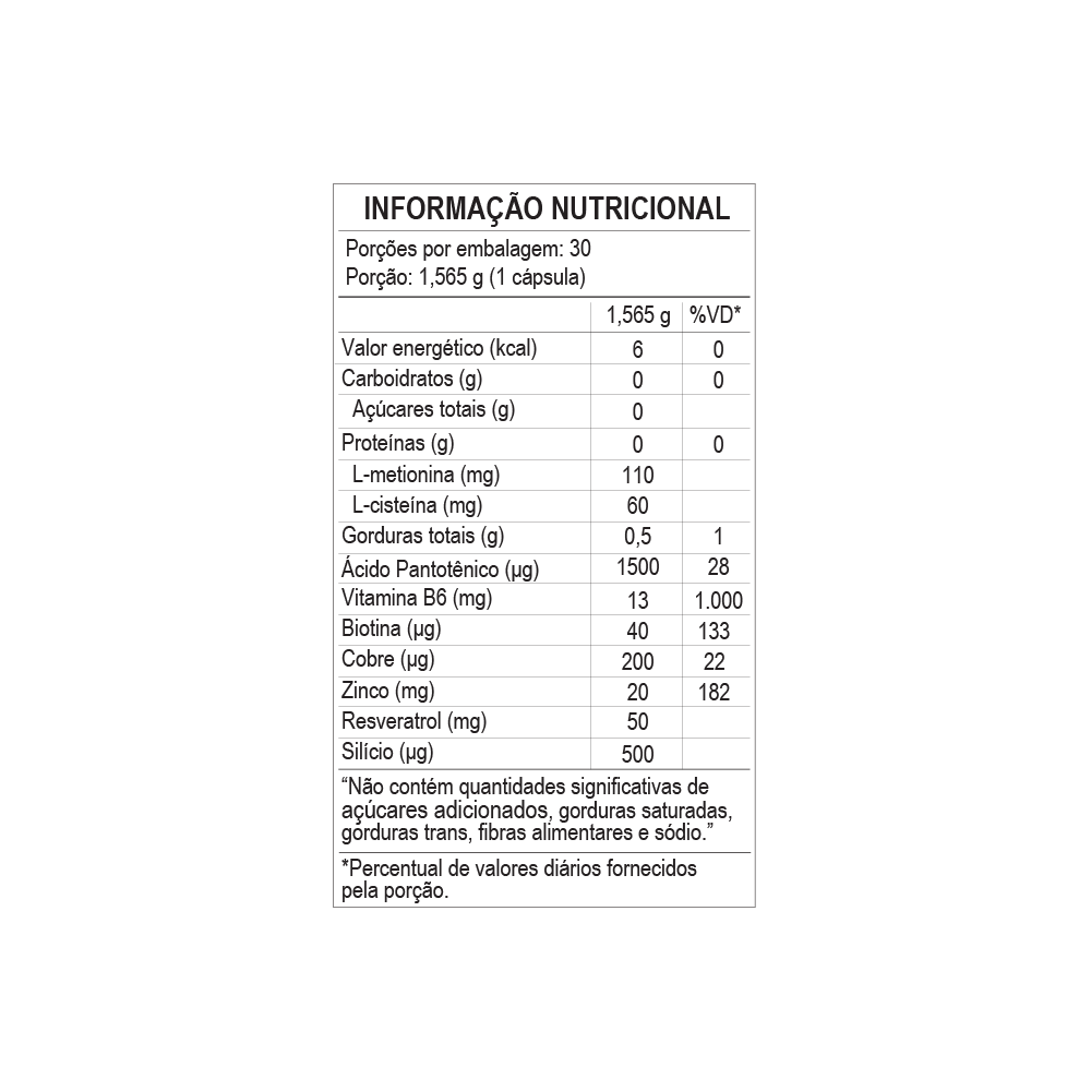 Fundamental na síntese de colágeno, elastina e ácido hialurônico, essenciais para a saúde de cabelos, pele e unhas.
